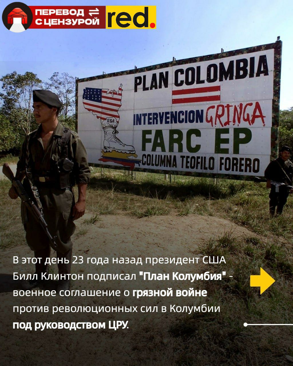 Менее известная, но не менее грязная тайная война ЦРУ в Колумбии, известная как “План Колумбия”, была начата 23 года назад, бывшим президентом США Биллом Клинтоном. За этим последовало более десяти лет жестокой борьбы с повстанцами, направленной против революционных сил, в первую очередь против коммунистических партизан ФАРК, в Колумбии. В то время правительство Колумбии было самым значительным союзником американского империализма в Латинской Америке.