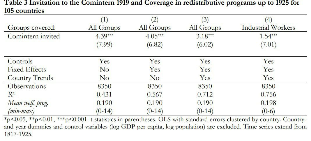 Норвежские учёные построили матмодель, которая отображает вклад революционеров в социальные реформы в выборке до сотни стран. Страны разделили на три группы по силе леворадикалов. Сила определялась как причастность тех или иных делегатов к конференции по созданию Коминтерна: партийные делегаты, беспартийные делегаты и тех, кого вовсе не позвали на конференцию из-за политической слабости.